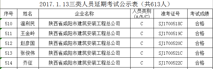 現將全省2017年1月13日受理的袁國慶等613人的建筑施工企業“三類人員”繼續教育考試成績予以公布,并就有關事項通知如下: